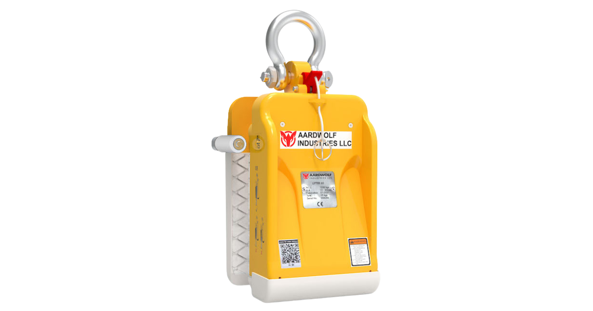 The patented Aardwolf Slab Lifter is an accessory for lifting and moving slab-form loads. The Aardwolf Slab Lifter incorporates a spring-loaded latch that automatically releases the lifter from the slab once the slab has been fully lowered to the ground. This make the process of lifting and lowering of slabs a one man operation.