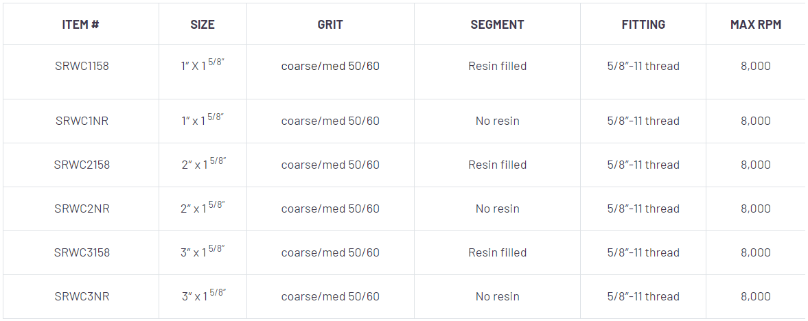 - Available with resin to reduce vibration or segmented for aggressive stock removal