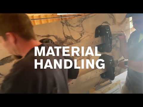 The G-Rail Support System rail attachment was initially created as a rigid system to safely and effectively transport large format porcelain slabs. G-Rail users have saved thousands of dollars a year by reducing breakage on site and redundancies in fabrication. The G-Rail system works in conjunction with Grabo brand vacuum cups. They attach underneath the Grabo handle and away from the slab. This gives the users multiple grab points along the rail, which makes handling heavier pieces or awkward spaces easier to accomplish.