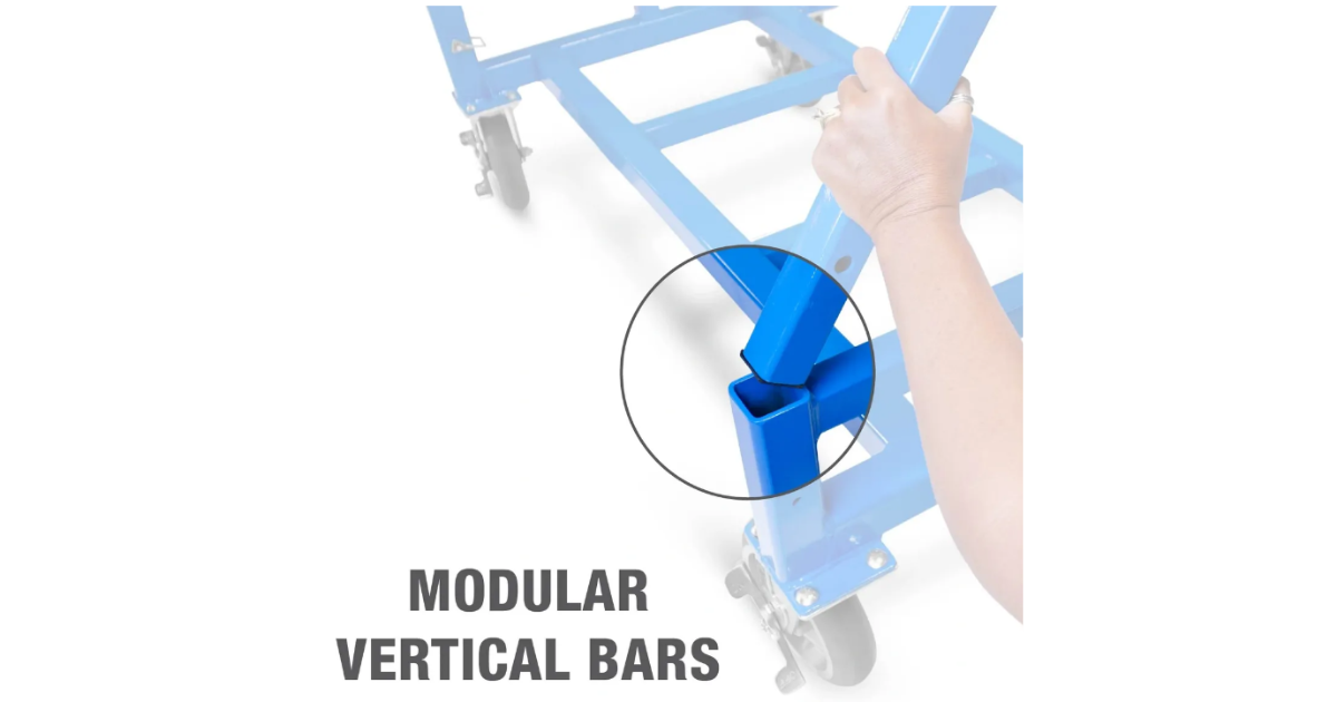 With four removable upright posts, this cart has multiple functions, including an industrial strength transport wagon, a heavy-duty dolly, a material handling cart or, when not in use, lock the brakes and it functions for storage.
