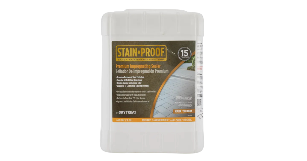 STAIN-PROOF® Premium Impregnating Sealer, formerly known as STAIN-PROOF Original™, is an impregnating, invisible and breathable sealer that provides premium long-term protection for natural stone, tiles, pavers, concrete, brick and grout from water and oil-based stains and damage caused by water and dissolved salts. Treated indoor and outdoor surfaces become easier to clean and keep looking good for longer.>more
